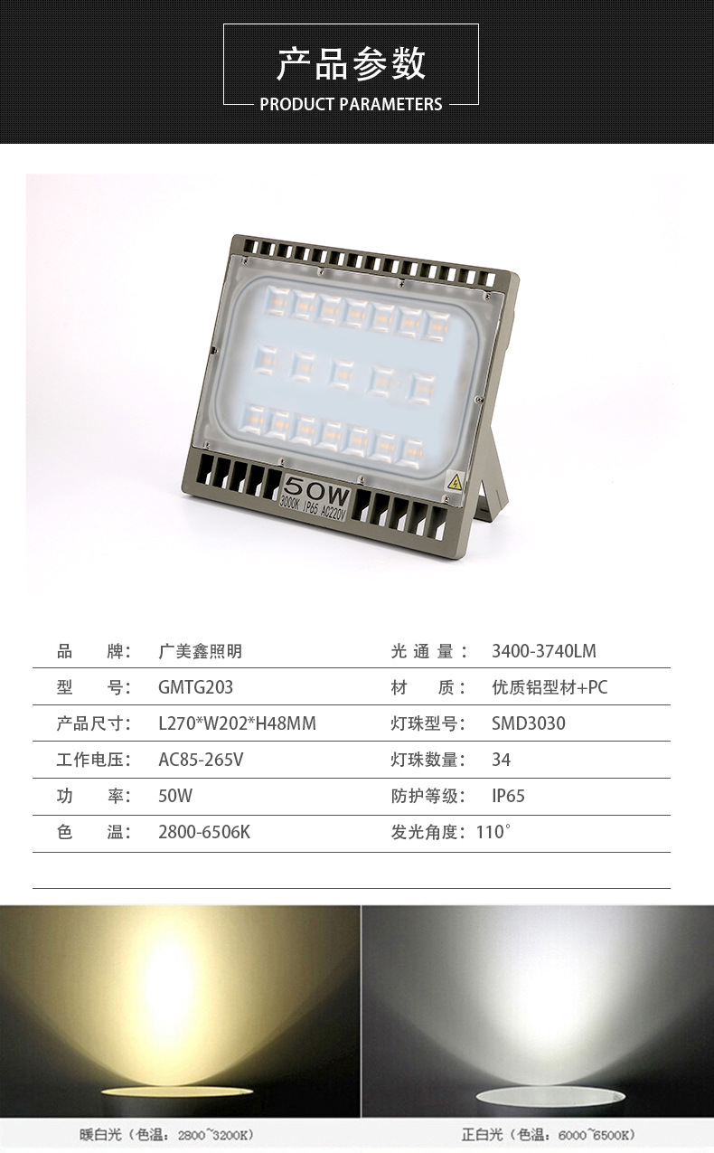 Color temperature | 3000K (warm white), 4000K (white), 6500K (cold white) | Series | LED flood light | Types of | LED flood light |